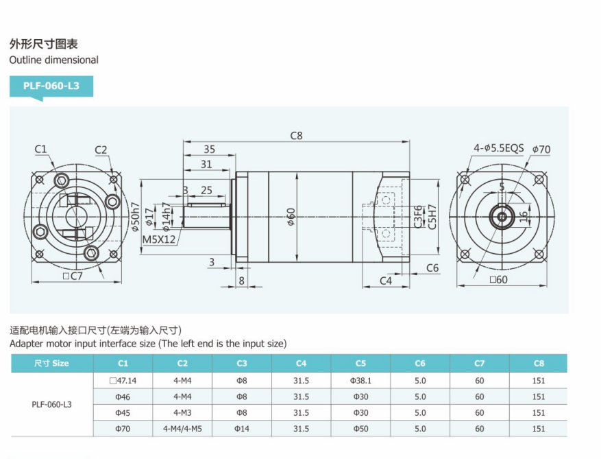 精密型行星減速器PLF60型號