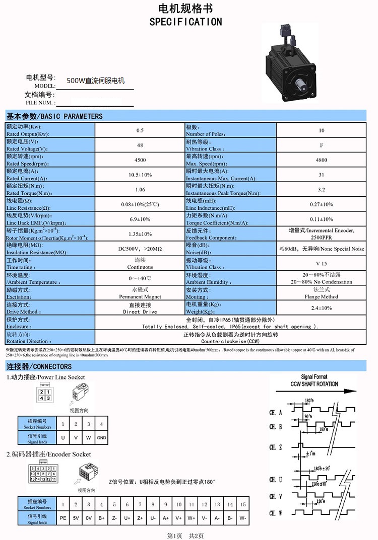 500W直流伺服電機(80低壓伺服電機)